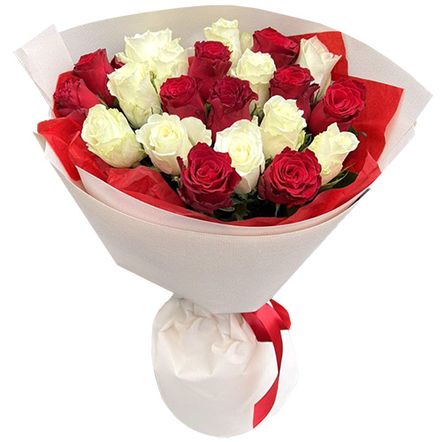 Ошатна композиція з червоних і білих троянд в ефектному оформленні припаде до душі яскравим і неординарним жінкам. Такий букет символізує одночасно пристрасть та ніжність, любов та відданість. Великий букет з 21 контрастної троянди — секрет кохання та спокуси! Він стане ідеальним подарунком на день народження, річницю весілля, романтичне побачення чи День святого Валентина. Такий презент порадує і на честь професійного свята, і як несподіваний сюрприз для дорогої жінки, підкреслюючи особливу увагу та щирі почуття.